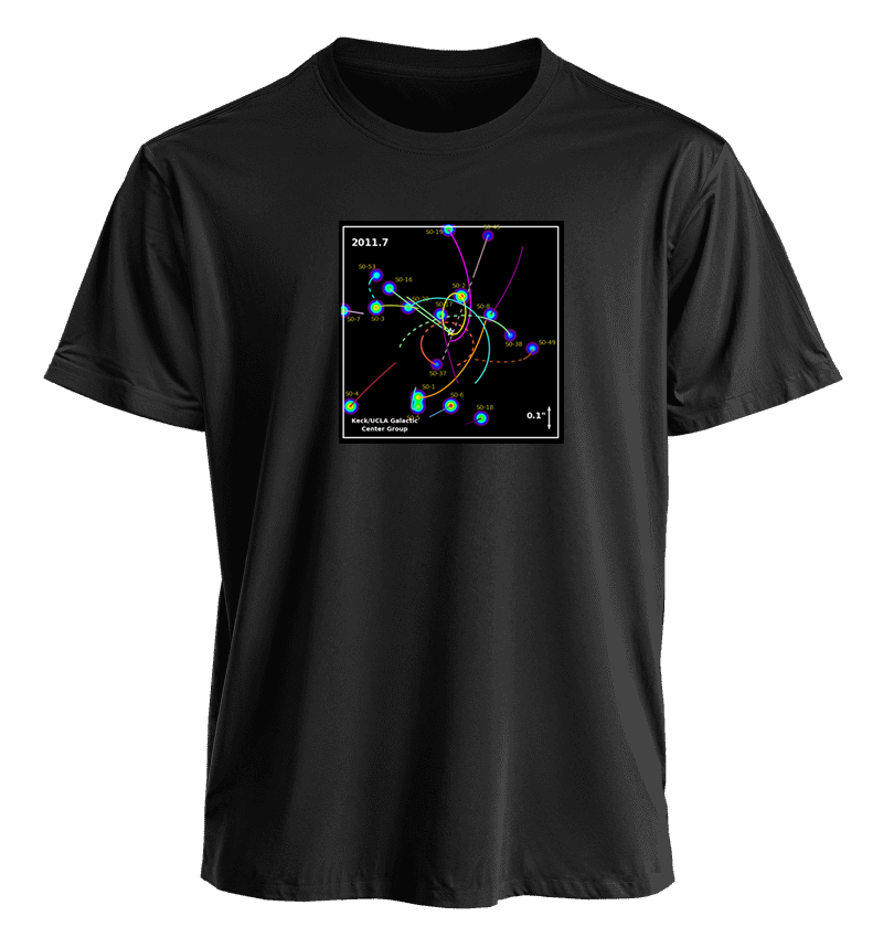 Polera con el diseño de las estrellas orbitando el Agujero Negro, Sag A*, en el centro de nuestra Galaxia.